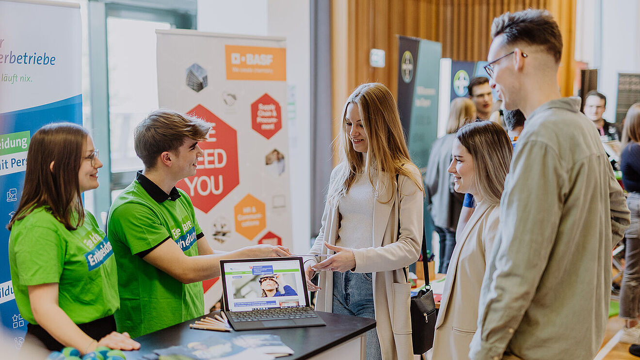 Die Studieninteressierten informierten sich direkt in der Hochschule über das Studium und in Gesprächen mit Unternehmen und Institutionen über die Praxissemester.
